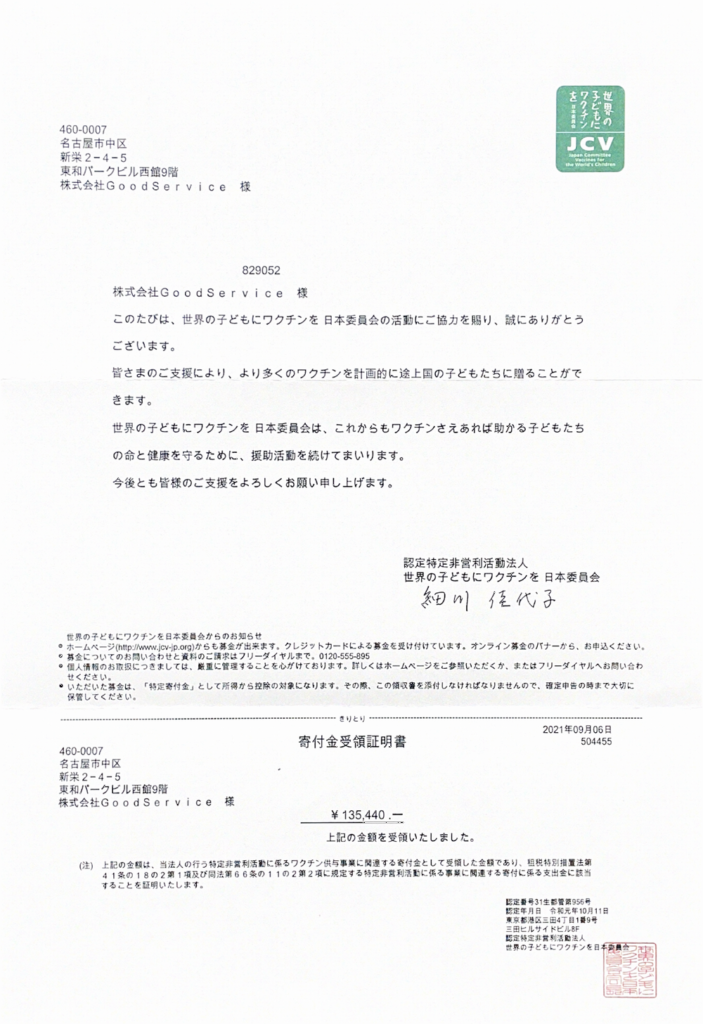 9月の寄付額は先月を大きく上回り135440円となりました。