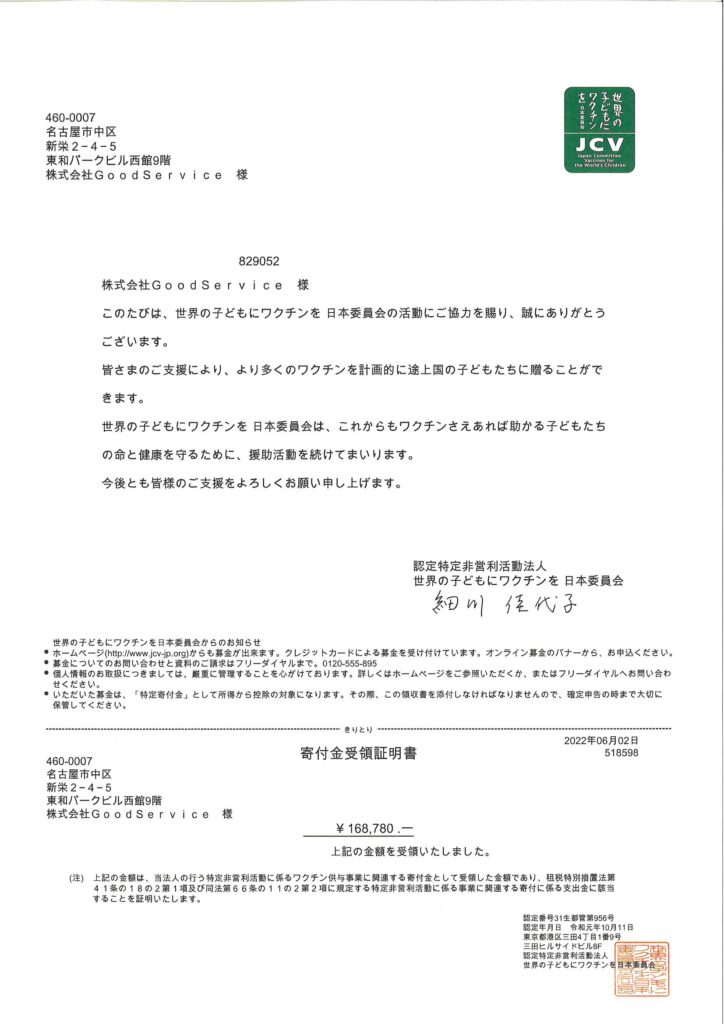ワクチンに換算すると約8439本分のワクチンとなります。