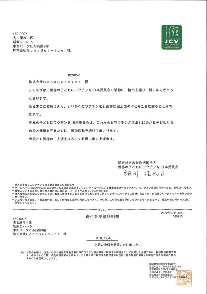 ワクチンに換算すると約5,352本分のワクチンとなります。