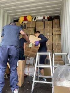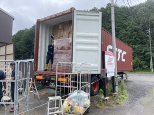 今月も寄付品の詰め込みを行いました。