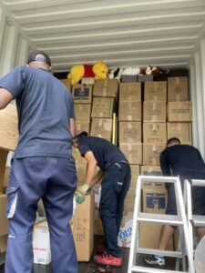 できる限り、たくさんの寄付品が送ることができるよう毎回試行錯誤しながら隙間が無いように詰め込んでいます。