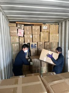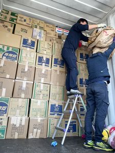 本日朝7時頃から集まった荷物のコンテナ詰め作業をさせていただきました。