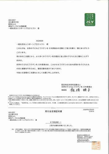 2026年【2月度寄付額】108,690円(ワクチン5,435本)